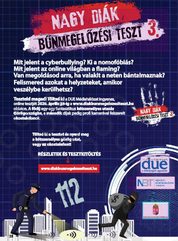 online tesztjét 2020. április 28-ig a www.diakbunmegelozesiteszt.hu